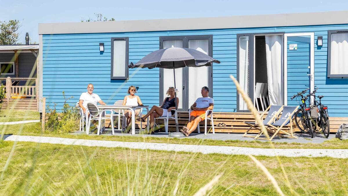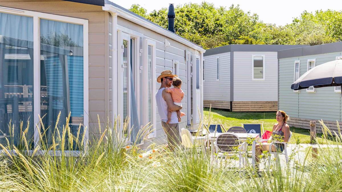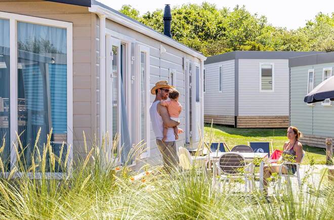 Chalet auf Molecaten Park Noordduinen Haben Sie kein eigenes Campingmittel, möchten aber trotzdem das gemütliche Campinggefühl genießen? Reservieren Sie dann eines unserer luxuriösen Chalets für 4 bis 6 Personen mit Terrasse oder Veranda! Die Chalets stehen beieinander, das macht es besonders schön, wenn Sie mit mehreren Familien in den Urlaub fahren.