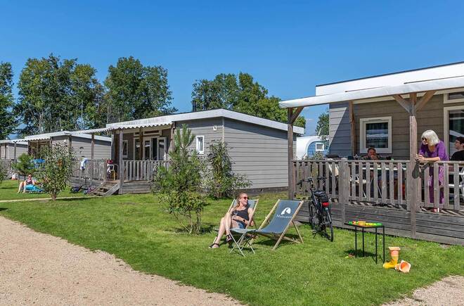 Kampeer Cabin auf Molecaten Park Rondeweibos 'Glamping' am Meer! Kommen Sie und übernachten Sie in einer unserer trendigen und luxuriösen Kampeer Cabins. Die Kampeer Cabin hat die Atmosphäre eines Zeltes, bietet aber allen Komfort (u.a. Betten, komplett eingerichtete Küchenzeile, Heizung, Toilette) und Luxus (u.a. Geschirrspüler und TV) einer Cabin. Nur für die Benutzung der Duschen nutzen Sie das Sanitärgebäude auf dem Campingplatz.