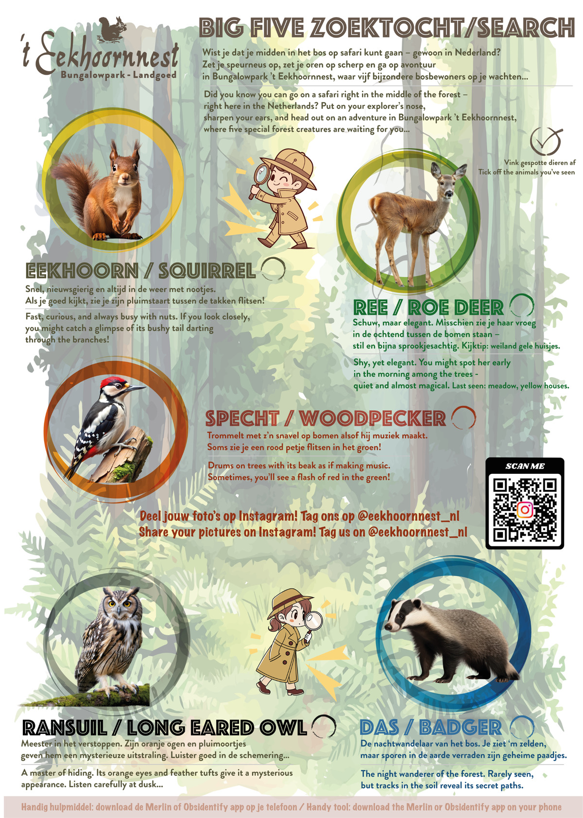 ’t Eekhoornnest is een kleinschalig familiepark, prachtig gelegen in de bossen en tegen de uitgestrekte Soesterse duinvlaktes. Het park is autoluw en bijzonder kindvriendelijk. Voor jong en ouder zijn er op en nabij het park diverse faciliteiten. De meeste gasten voelen zich er meteen thuis en hoeven zich geen moment te vervelen.